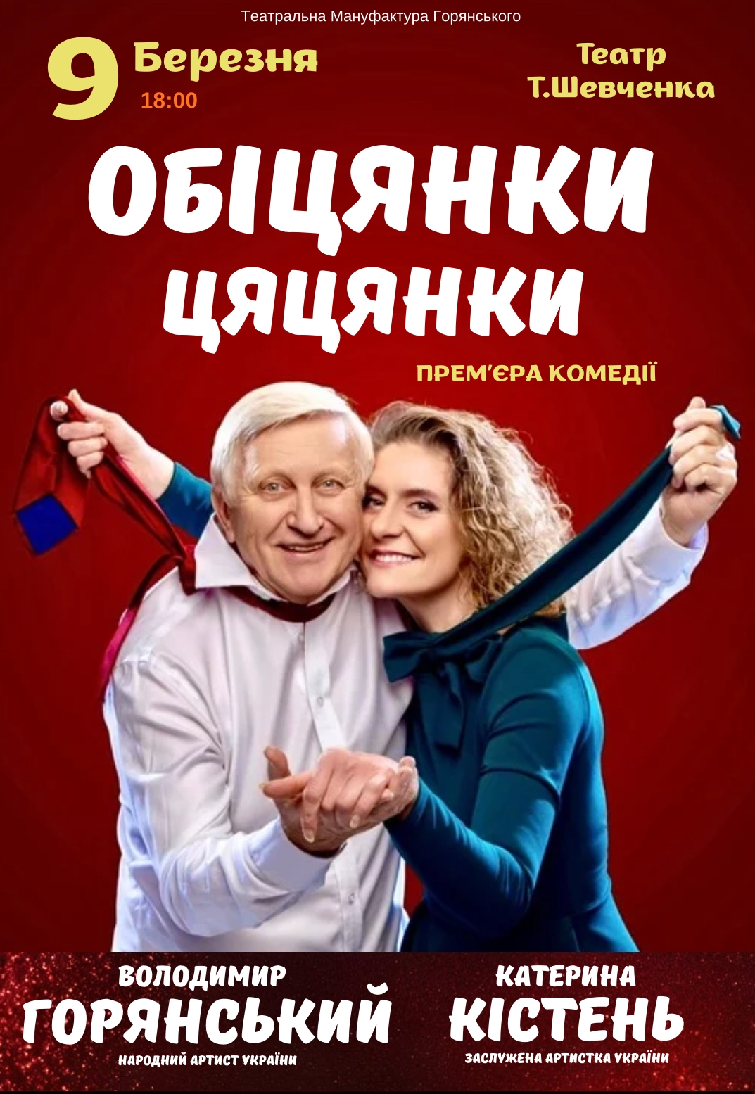 Спектакль "Обещания пустышки". Премьера! состоится 9 марта 2026, 18:00, понедельник в Театр им. Шевченко. С помощью сервиса internet-bilet.ua, Вы сможете с легкостью забронировать, заказать и купить билеты на интересующий Вас концерт, спектакль, оперу, балет, мастер-классы, спортивные и детские мероприятия, оплатив их самым удобным для Вас способом: через интернет банковской картой VISA/MasterCard, наличными или курьером, если сделаете заказ билета c доставкой.
